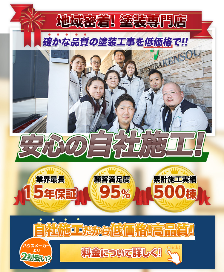 外壁の汚れやひび割れが気になったため、地元の業者さんをネットで探していました。 四葉建装さん・・・ -