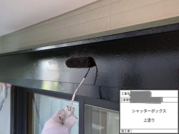 千葉県四街道市 T様邸 外壁塗装工事 シャッターボックス 下塗り~中塗り~上塗り