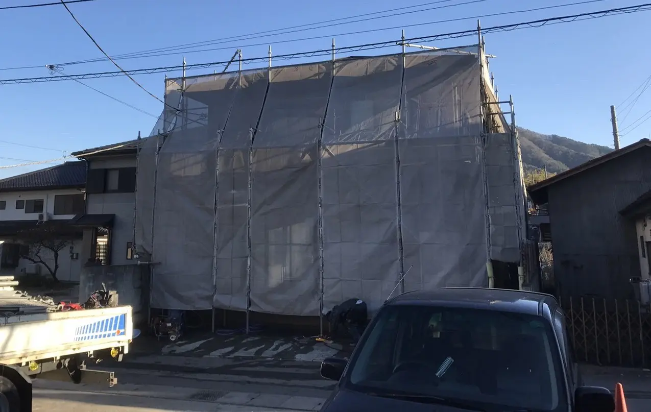 この時期は風も強いので、足場が風で少し揺れることもありますので、慎重に工事を進めていきます。