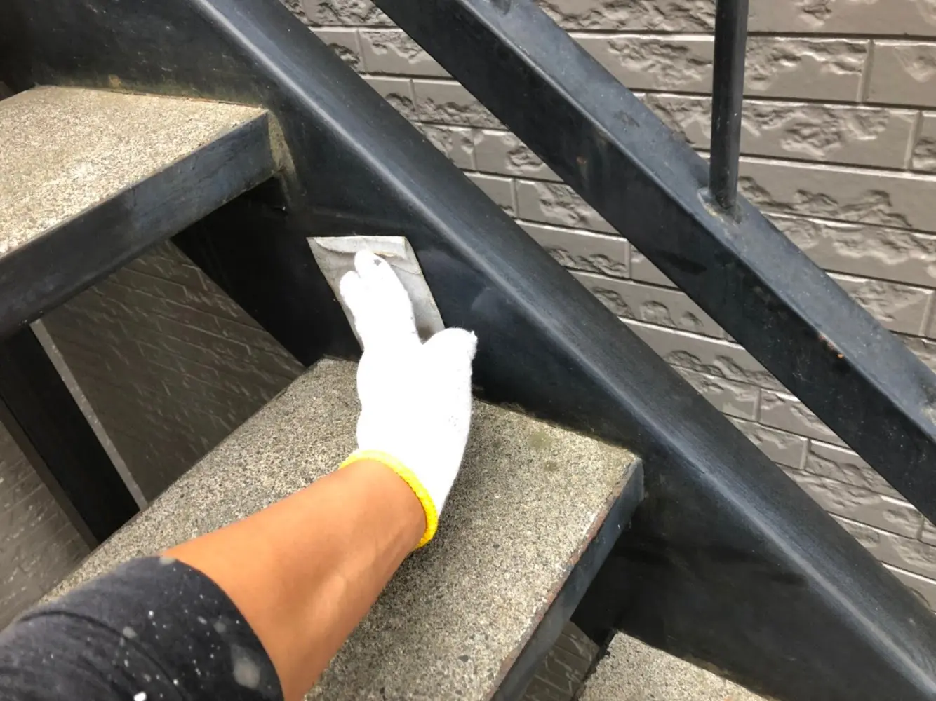 今回のお客様邸は鉄骨製の階段があり、その塗装もご依頼頂いており、その階段のケレンを行いました。