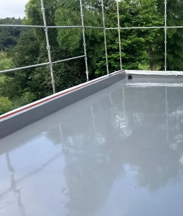 ウレタン樹脂は紫外線が直接当たると劣化しやすくなってしまうので、必ずトップコートを塗布して防水層を保護します。