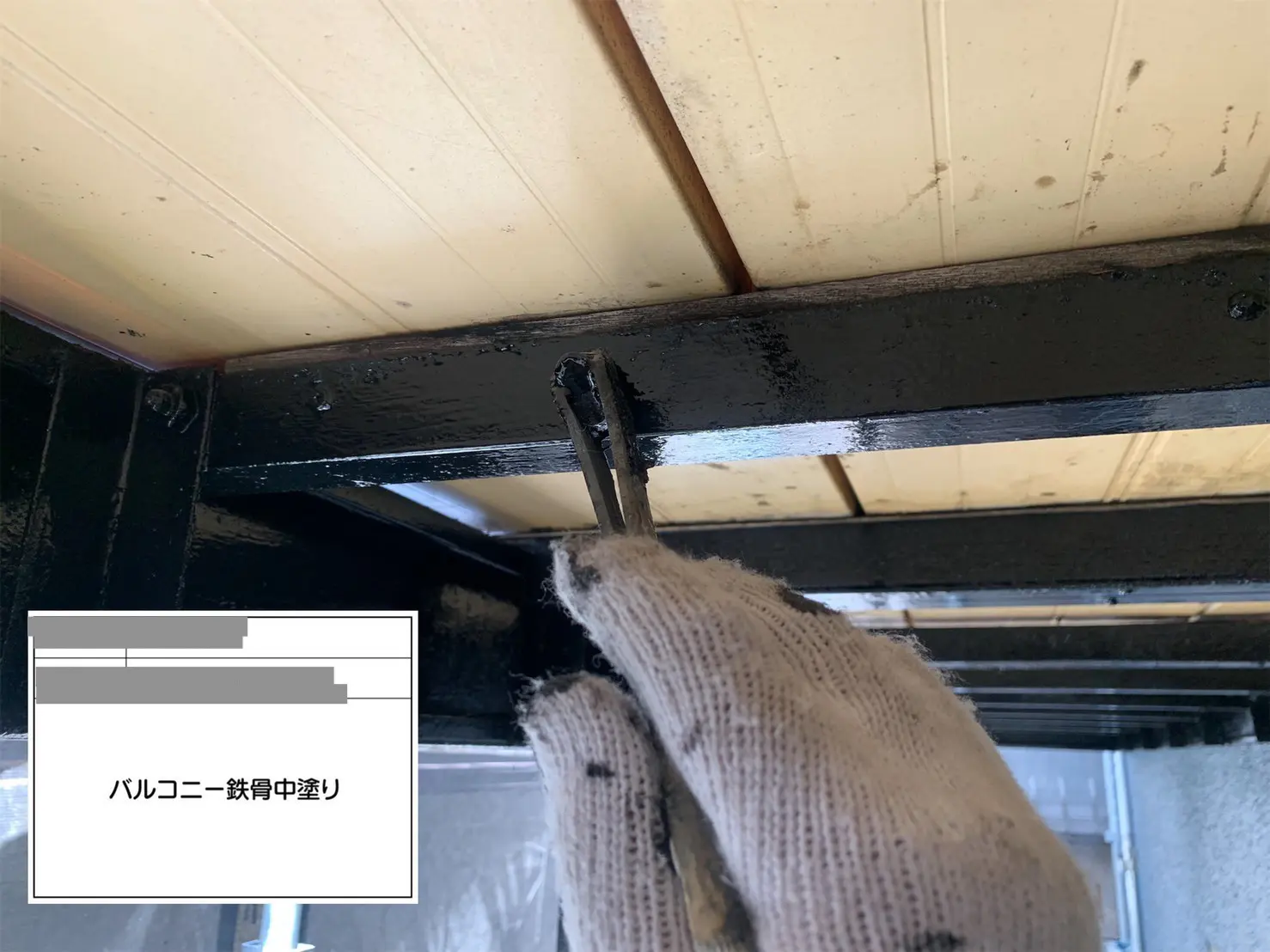 千葉県習志野市 M様邸 外壁塗装 バルコニー鉄骨、中塗り