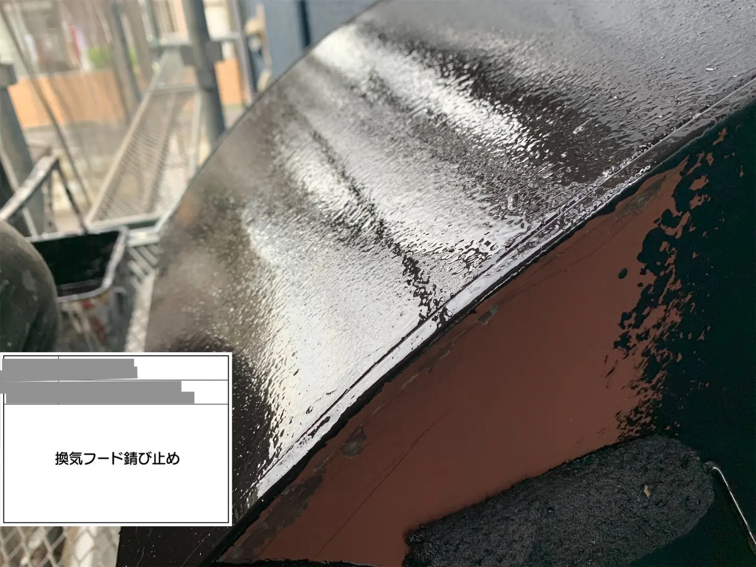 換気フード全体に均一に錆び止め塗料の塗布をしたら、一定時間乾燥させます。