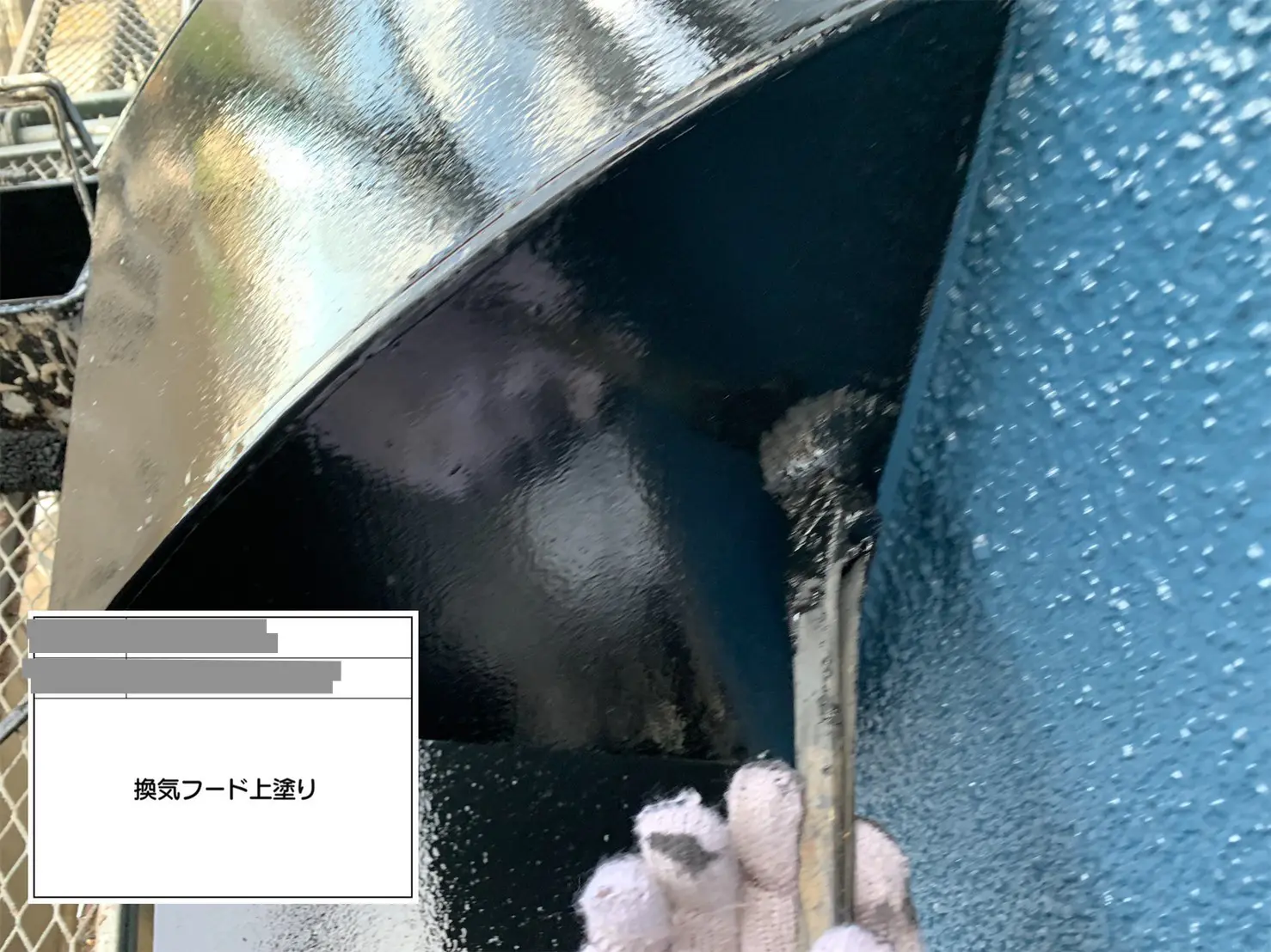 塗料が指定する時間の乾燥を終えた後、換気フードの上塗りを行います。