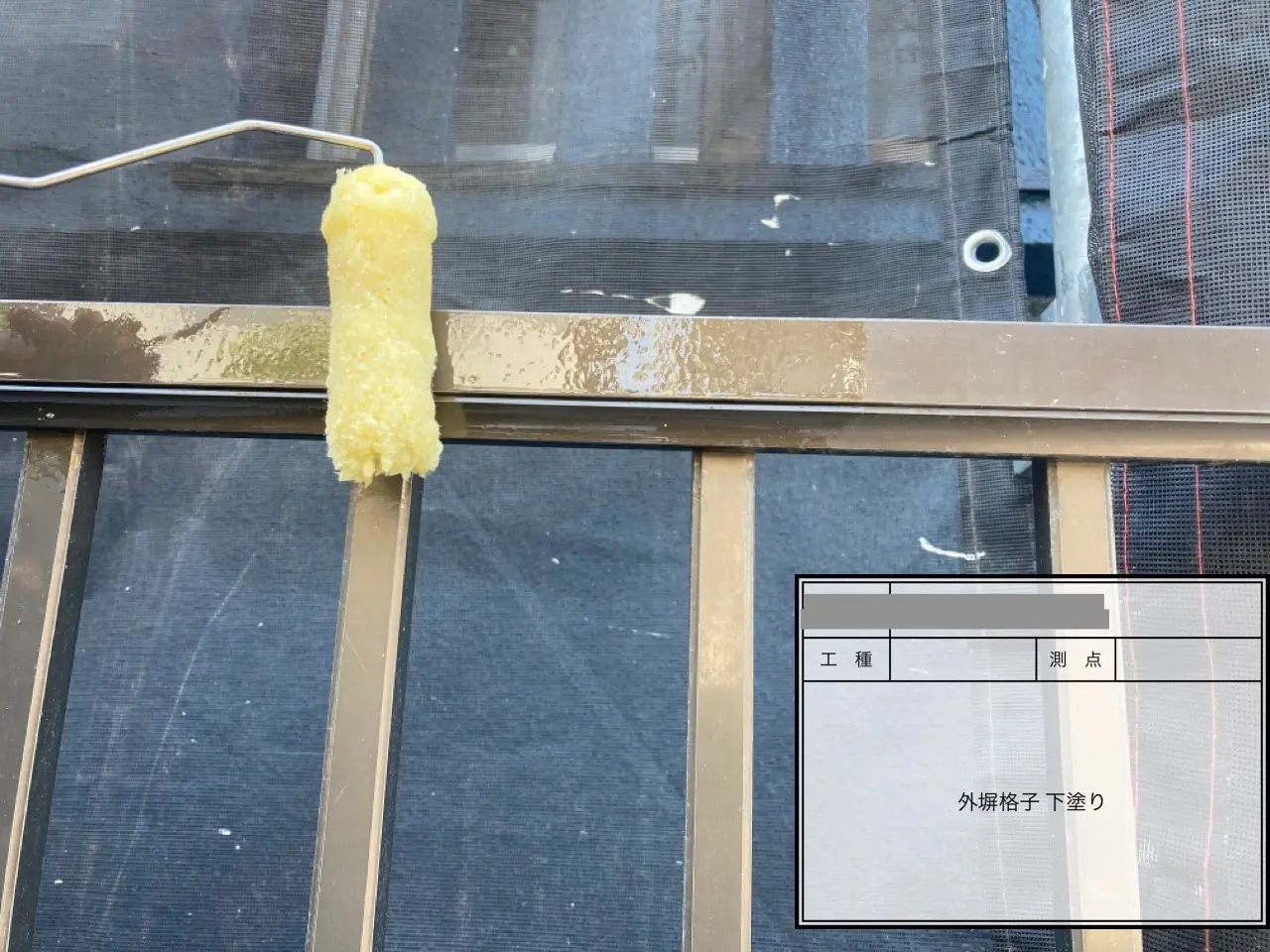 外塀の格子も、他の箇所と同じように、まずは下地処理から始まります。