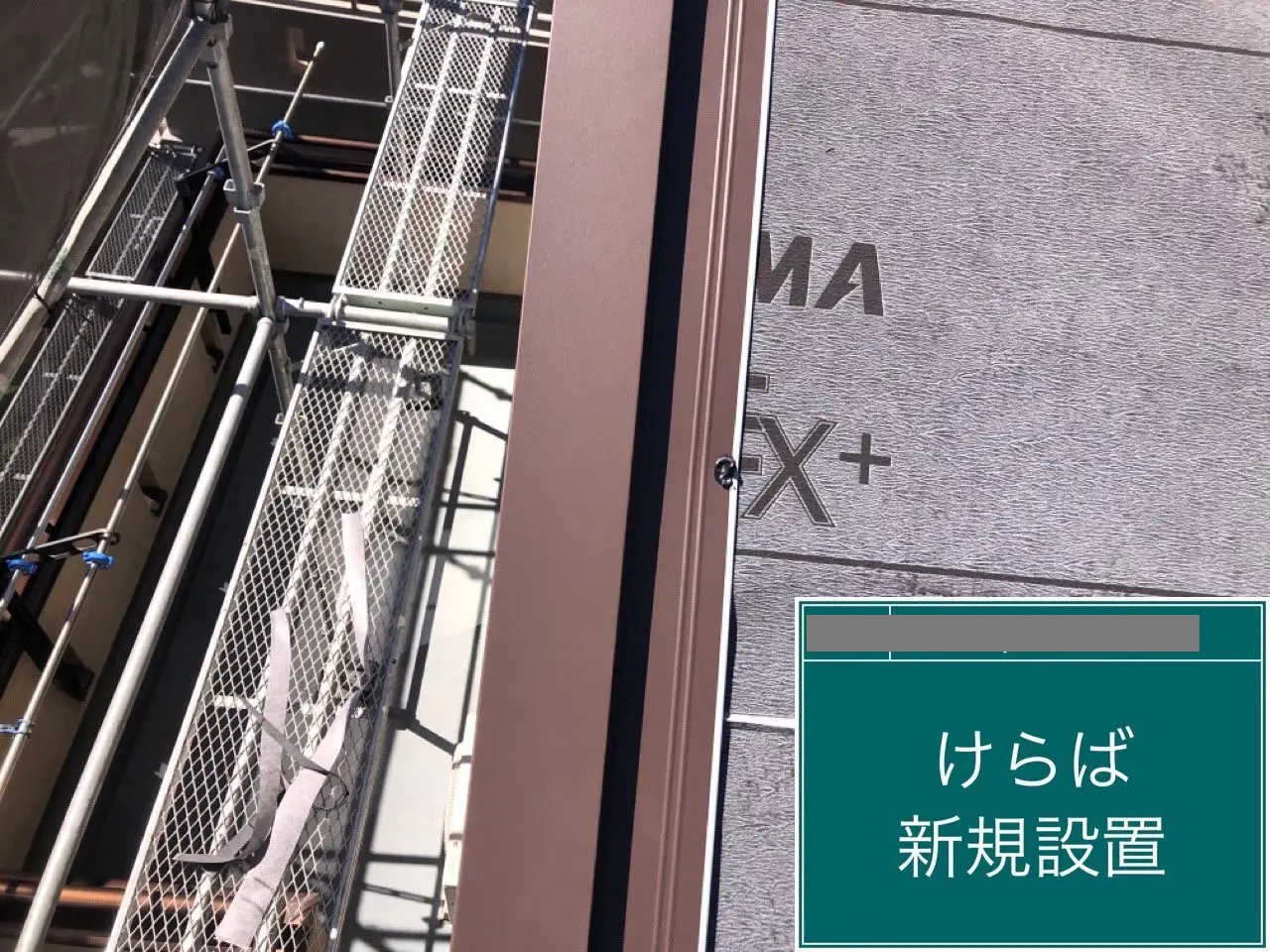 今回は、ルーフィングの設置を終えた屋根に、けらばを設置する作業を行いました。