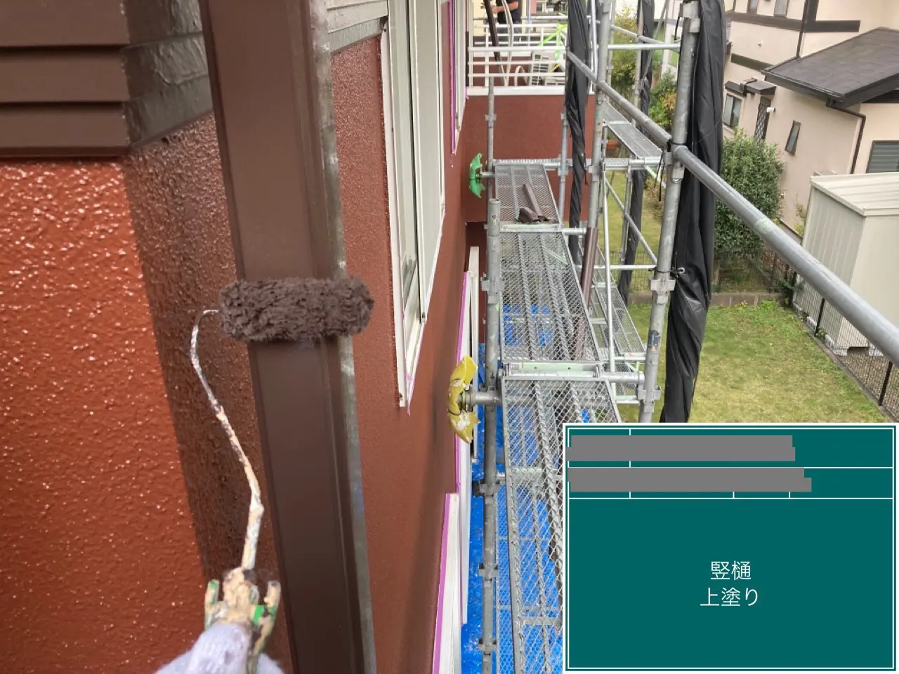 千葉県四街道市のO様邸で、付帯部塗装、竪樋の中塗り、上塗り作業を行いました!