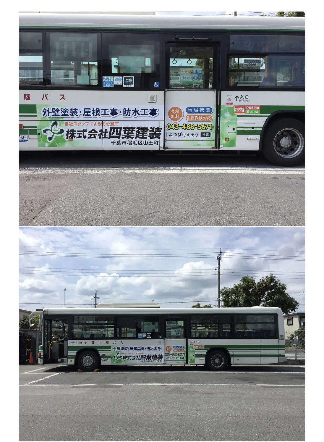 四葉建装の広告つきのバスが、千葉県内を走っています!