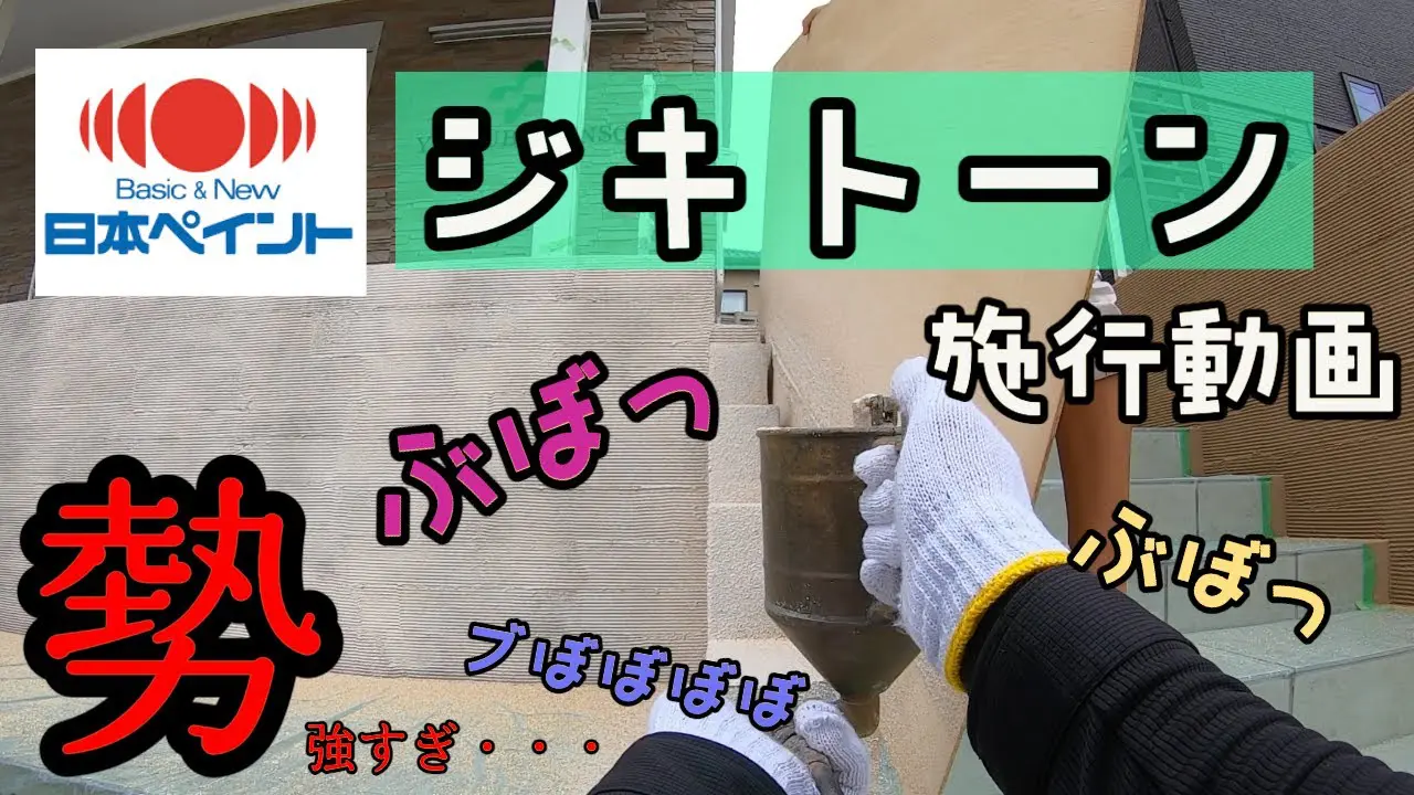養生、下塗り、中塗り、上塗り、ジキトーンの施工をしています。